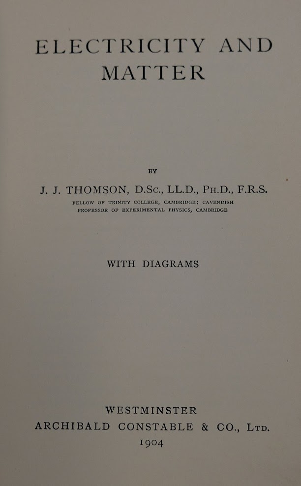 Em 1904, ele sugeriu um modelo do átomo, hipotetizando que era uma esfera de matéria positiva dentro da qual as forças eletrostáticas determinam o posicionamento dos corpúsculos. A publicação na qual ele publicou sua sugestão de modelo é chamada “Eletricity and Matter” (Eletricidade e Matéria).